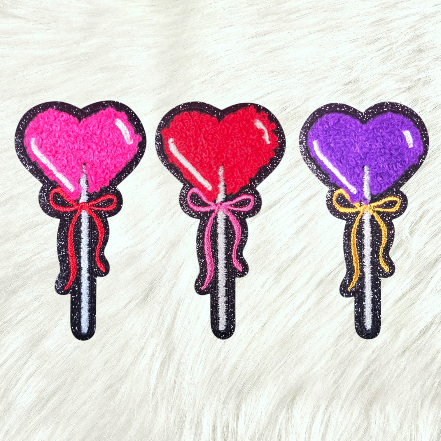 Heart Sucker Valentines Bow Chenille Iron On Patch