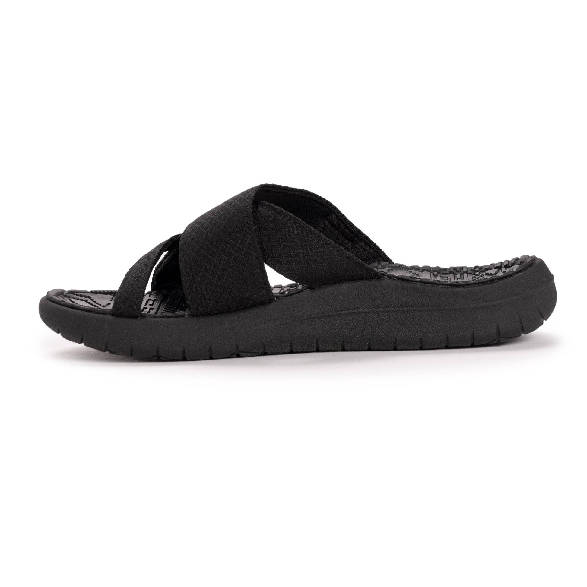 Elevate your summer footwear collection with MUK LUKS Women's Sassy Cross Over Slide Sandal where style meets comfort in every step. Elevate your summer footwear collection with these sandals, featuring a criss cross strap upper, a fairisle embossed comfort footbed, and a lightweight, flexible sport outsole. MUK LUKS Sassy Cross Over Slide Sandal is a fusion of effortless style and everyday comfort. Stay light on your feet with the lightweight and flexible sport outsole and embossed comfort footbed for all day comfort.